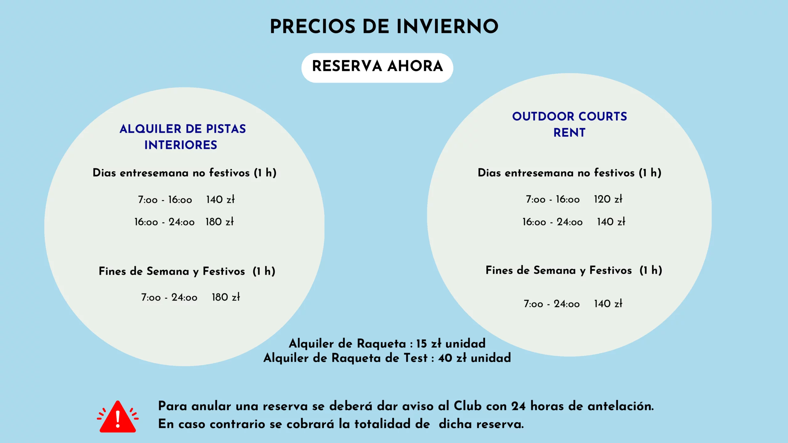 Las tarjetas deben ser presentadas antes de entrar en la pista. El descuento se aplica solo al alquiler de pistas. tarjetas no se aceptan el caso de torneos o competiciones.